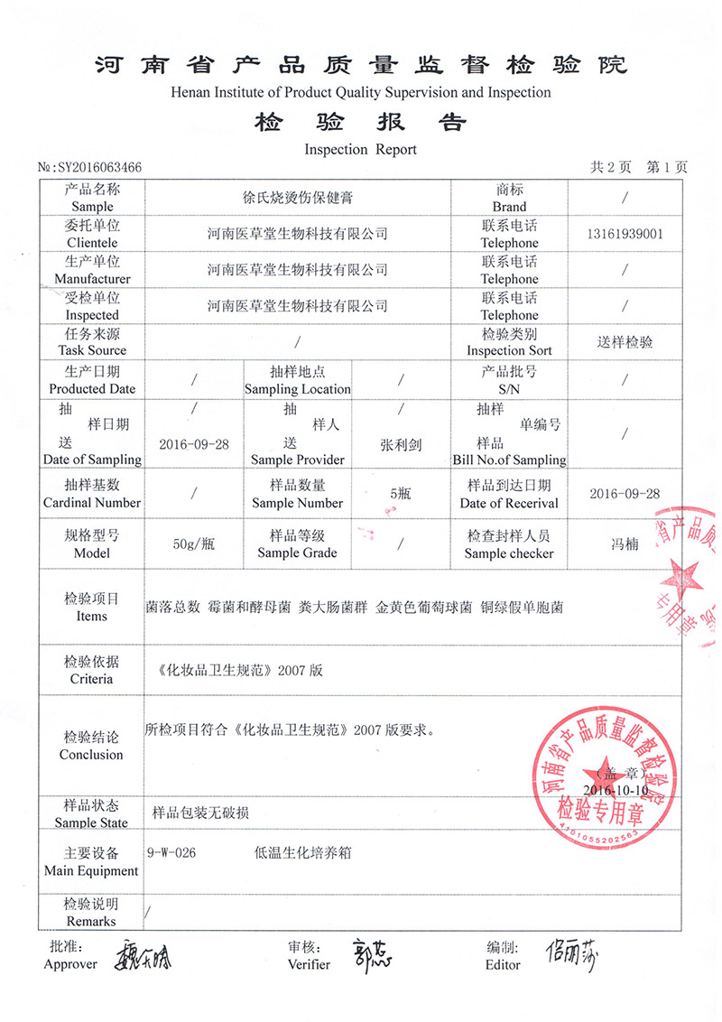【適用范圍】徐氏燒燙傷保健膏為外用保健用品,對燒、燙、灼皮膚具有促進(jìn)健康的保健作用。