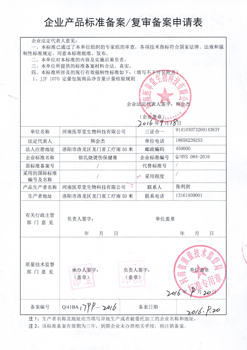 【批準(zhǔn)文號】豫健證字[2015]第052號(更)